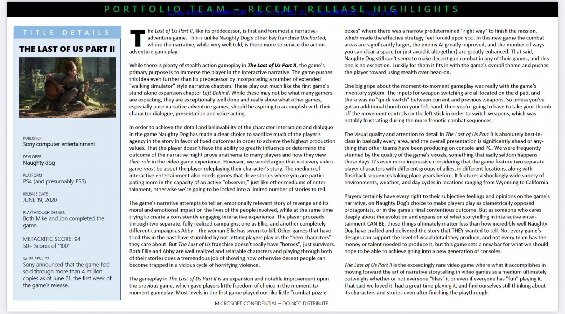 У Microsoft произошла утечка внутренних документов благодаря котором появились новые подробности относительно мнения американской корпорации о The Last of Us: Part II.