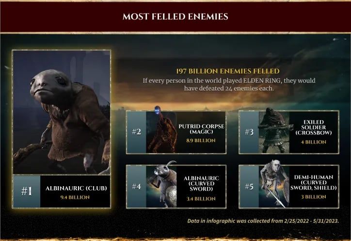 Новости 82 млн боїв у Колізеях і 197 млрд вбитих монстрів - статистика Elden Ring