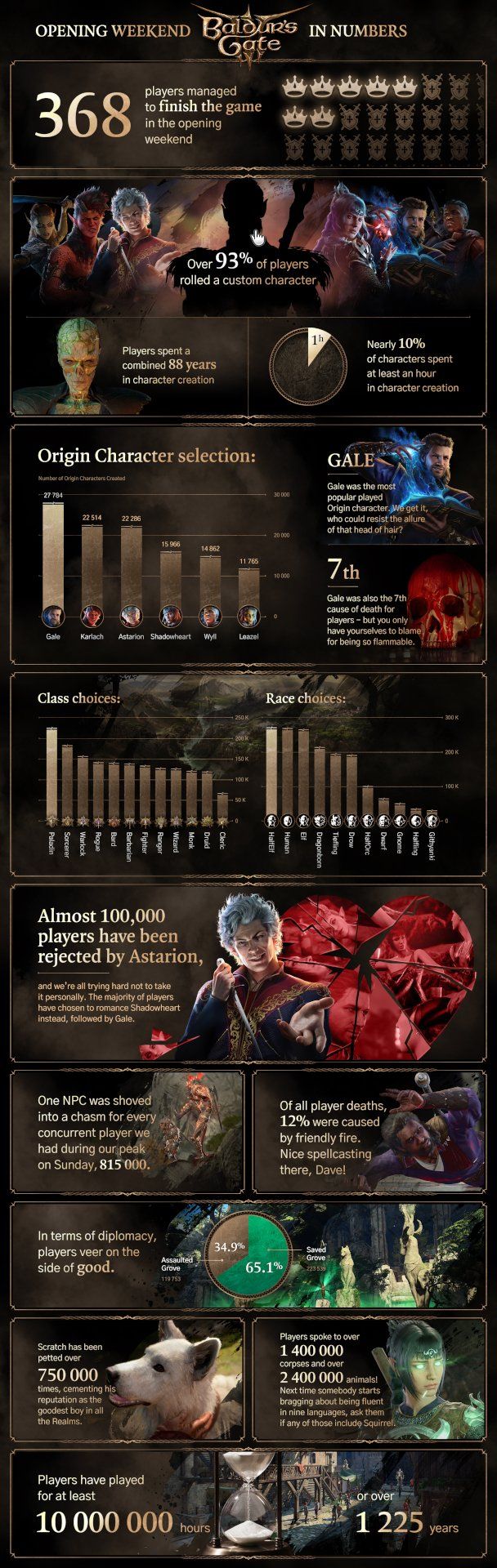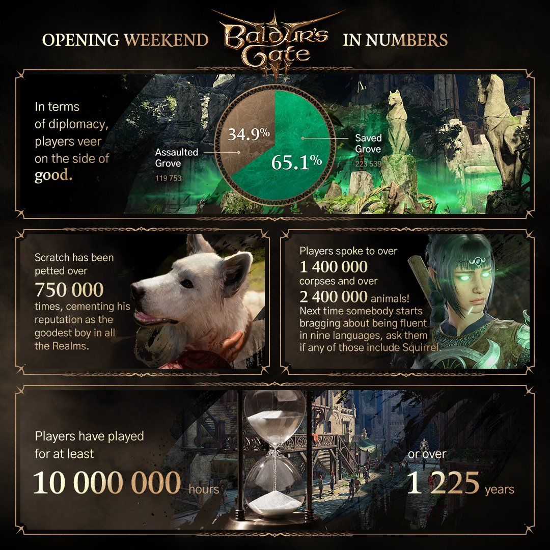 Новости 1225 років у грі та 88 років у редакторі персонажа — статистика Baldur's Gate III