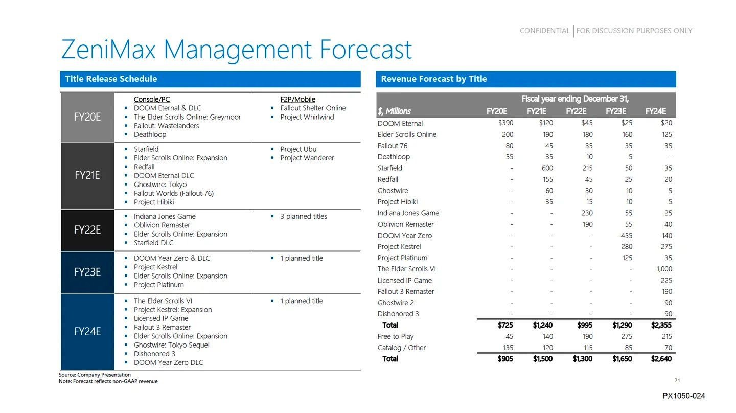 Якщо вірити слайду з презентації ZeniMax Media, до її покупки «майками» компанія мала дуже щільний графік релізів. Станом на липень 2020-го фірма готувала такі неанонсовані ігри: