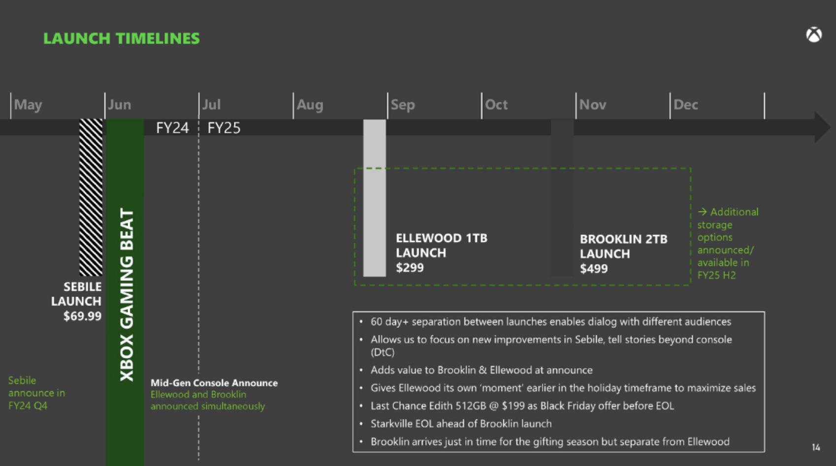 Анонсують обидві консолі одночасно влітку 2024-го. Запуск Ellewood запланований на серпень 2024 року за ціною 299 доларів, а Brooklin - на жовтень того ж року за 499 доларів.
