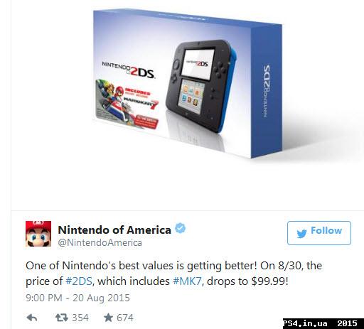новости Бандл Nintendo 2DS с Mario Kart 7 подешевеет до $99,99