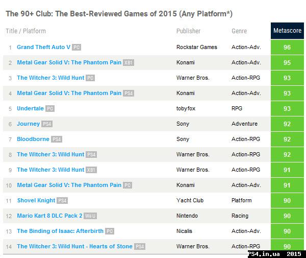 новости Самые высоко и низко оцененные игры 2015, по данным Metacritic