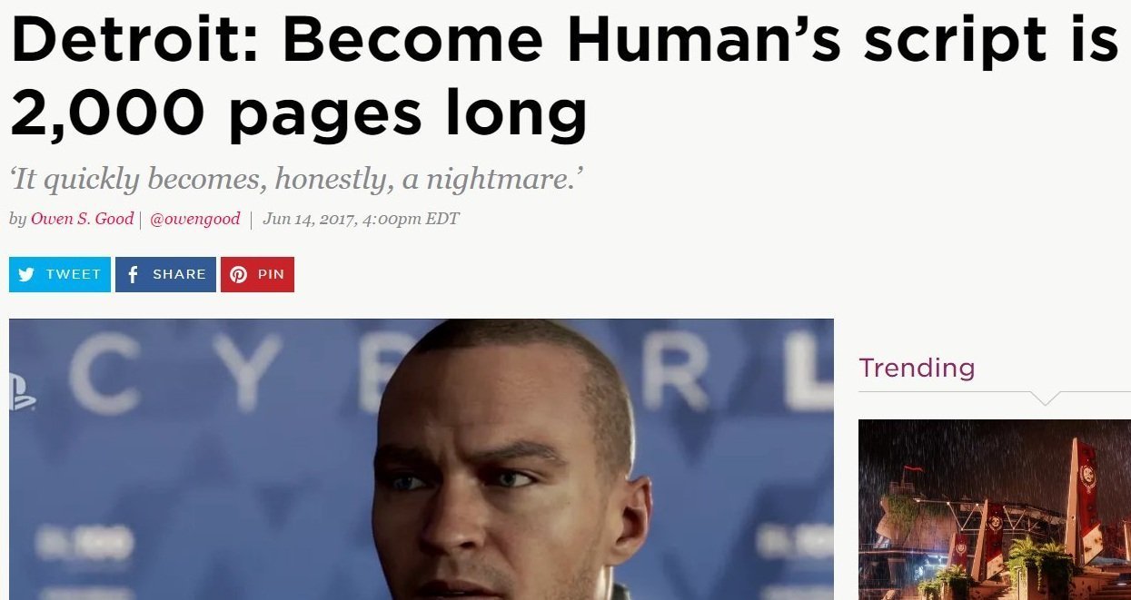 новости Дэвид Кейдж говорит, что сценарий Detroit: Become Human составляет 2000 страниц. Опять?